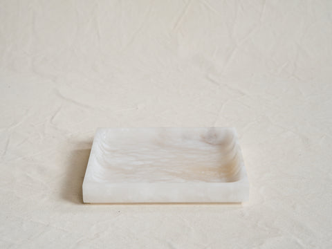 MEDIUM SQUARE TRAY / WHITE ALABASTER