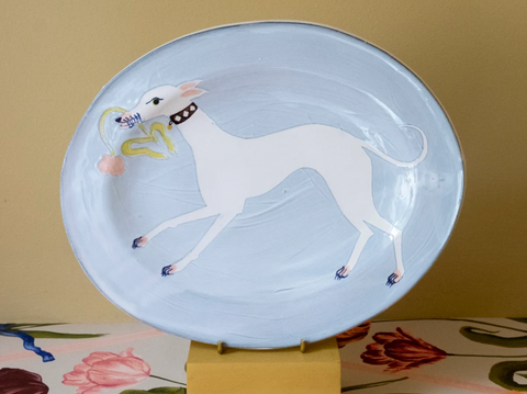 Inspired and informed by traditional ceramic shapes, but slab build to create a modern take on a traditional vessel. Each piece is handmade and bisque fired. They are then dipped in a Tin glaze with each one painted upon using oxides and pigments. These loose paintings upon the ceramics, make each piece an original work of art. Each piece is illustrated with a drawing inspired by places, historical and childhood stories.