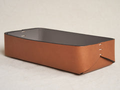 Italian vegetable tanned leather, raw dyed edges, contrast hand stitching