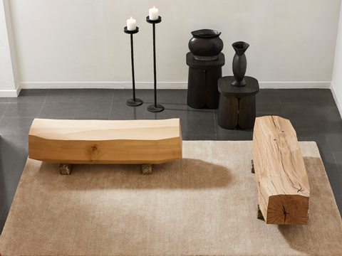 At first glance, it is a log of wood just stripped of its bark. That moment when the material begins a new life cycle, long before the tree becomes furniture. Brutalist, the Orb bench is nevertheless a true demonstration of know-how and a questioning of the very notion of refinement. The hand intervenes here simply to emphasize and preserve the raw material, as if trying above all to erase its intervention.