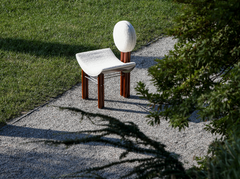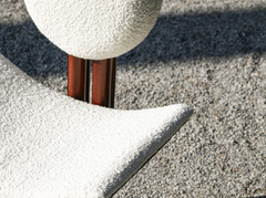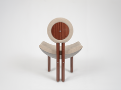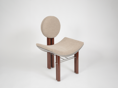 Sister Moon evokes the moon in its two phases, the full moon represented in the round backrest and the crescent moon in the sickle-shaped seat. The eclipse shape of the chair suggests a feeling of lightness that, together with the marble or wood insert in the backrest, celebrate its spirit. Fine materials such as Mahogany, Dedar Bouclé, Chenille fabrics, and stainless steel are combined to create an elegant and sophisticated seating experience.