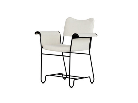 Combining material simplicity with a decadent aesthetic, the Tropique Collection comprises two dining chairs and a dining table. The frame of each piece is made from stainless steel rods, incorporating a distinctive statement curve at the feet, a signature of Matégot’s style and a feature that unites the collection into a clear and cohesive whole.