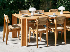 The C-Chair optimized for the outdoors in both ergonomics and materiality. Proportions have been fine-tuned to maximize comfort and frames have been carefully crafted with traditional joinery using plantation teak. The seats and backrests are tightly woven from an outdoor all-weather fiber made of an extruded polyethylene and twisted to resemble natural hyacinth woven furniture.