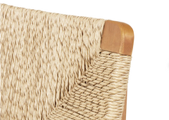 An archetypal lounge chair, the F-Chair evolved out of the C-Chair and shares the same tapered rear legs, though the F-Chair features upright front legs. The more relaxed incline and paddle-shaped armrests, together with its woven seat which widens at the front, make the F-Chair an altogether more leisurely affair.