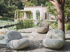The widely beloved Pacha Lounge Chair has now been revisited and reinvented for this outdoor collection. With a small footprint, the Pacha Outdoor Collection can be clustered in different combinations to suit the scale of the outdoor space as well as the style and atmosphere of the setting.