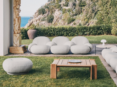The widely beloved Pacha Lounge Chair has now been revisited and reinvented for this outdoor collection. With a small footprint, the Pacha Outdoor Collection can be clustered in different combinations to suit the scale of the outdoor space as well as the style and atmosphere of the setting.