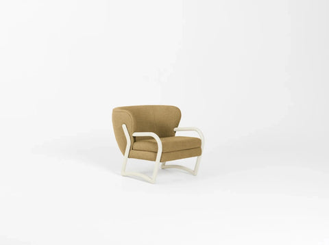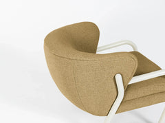 Polus 016 is a generously shaped and inviting armchair. Anchored in sculpted lacquered metal, its padded wraps-around backrest ensures exceptional comfort.