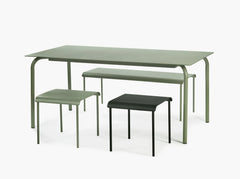 The August collection by Vincent Van Duysen for Serax is made of aluminum and it is available with a black, white or eucalyptus green powder coating. This makes it suitable for both indoor and outdoor use. The chairs, stools, benches and tables articulate the sheer simplicity of the monastic life they were inspired by.