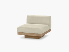 The Rudolph outdoor sofa – with an identical look to the indoor version – is available as an armchair, two-seater or three-seater, with the option to combine with a Rudolph ottoman. The sofa has a teak frame and weatherproof white cushions. The pieces look natural and stylish and are incredibly comfortable. Very Serax and very Vincent Van Duysen.