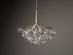 machined brass and aluminum, hand blown glass globes, decorative cotton or leather coiling
