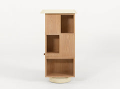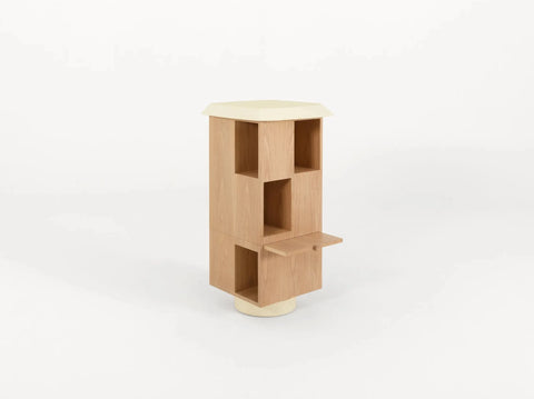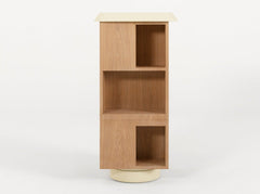 Stacked like a Totem and placed on a rotating base that gives an impression of lightness, this bookshelf is classic but unexpected.