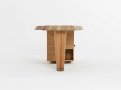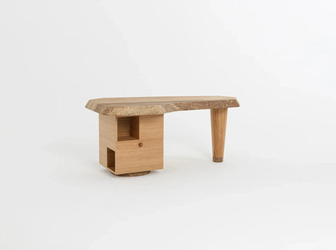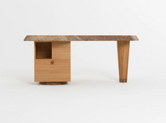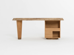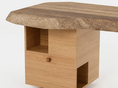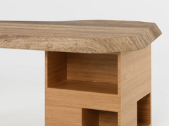 The atlas desk offers a sleek and natural design, just like its smaller sibling, the atlas mini. Distinguished by a magnificent travertine tabletop, this version exudes an added touch of elegance.