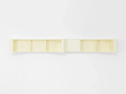 Entirely lacquered, this mounted shelf has a unique asymmetrical profile, making it both utilitarian and art piece.