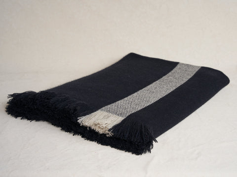 This Otherways blanket is hand woven from the finest quality yak wool. Its basket weave and the use of 4 twisted threads provide a density in the hand which is ideal for the colder months. Its design and the attention paid throughout its manufacturing guarantee timelessness and durability.