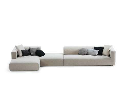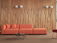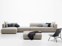 MATCH derives from a family of modular sofas, offering a number of compositions adapted to each given space. Its morphology is defined by the simple basic lines of a somewhat lower armchair and an elevated armrest. While the cold foam fills its complete volume with sufficient firmness for comfortable sitting, a cover made from natural materials furthers the experience of comfort and relaxation.