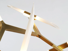 Originally conceived as a candelabra, Agnes takes its inspiration from the fictional heroine of the same name, a worker in the world's oldest profession during the 1849 California Gold Rush. The modular system would allow Agnes easy setup in her makeshift "workspace." In this version, glowing glass tubes replace the candles. Articulated joints allow the glass to be arranged in a multitude of ways.