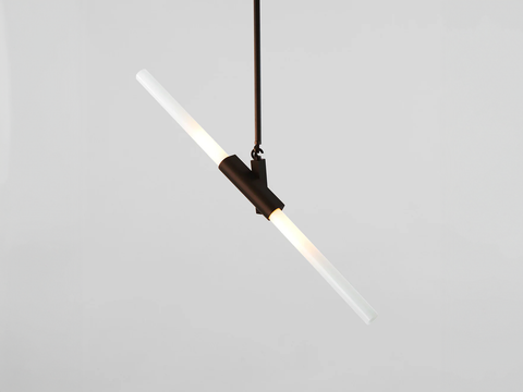 Originally conceived as a candelabra, Agnes takes its inspiration from the fictional heroine of the same name, a worker in the world's oldest profession during the 1849 California Gold Rush. The modular system would allow Agnes easy setup in her makeshift "workspace." In this version, glowing glass tubes replace the candles. Articulated joints allow the glass to be arranged in a multitude of ways.