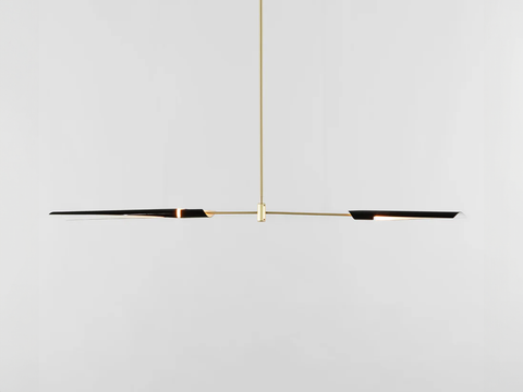 Boden is a sculptural fixture emanating from irregular balancepoints. Designed to be versatile in application, the componentsfeel equally refined as a single piece, or installed as repeating architectural elements, or groups. The Boden shades contain a dimmable LED source and rotate to cast light directionally. The design is intricate, refined, and elegantly efficient.