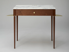 Something tiny, something square, something shiny, something spare. The Cain tables are rooted in a desire for classic detailing in a ghost-like form. The legs are as delicate as possible, while the brass details add a 70's sexiness.