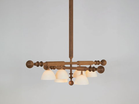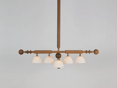 Helgerson's Del Playa is composed of turned wood stems and ceramic shades that recall her childhood on the beaches of Santa Barbara. The materials in this line feel very much of that time and place – the handcrafted aesthetic of California in the 70s.