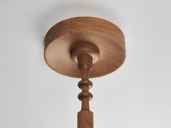 Helgerson's Del Playa is composed of turned wood stems and ceramic shades that recall her childhood on the beaches of Santa Barbara. The materials in this line feel very much of that time and place – the handcrafted aesthetic of California in the 70s.