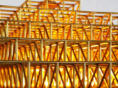 Raw and unpretentious, Gridlock is a series of lamps in the style of the Brutalist movement. Gridlock feels industrial in its straightforward, platonic forms and the repetitive efficiency of the grid; however, it is assembled entirely by hand from thousands of tiny brass parts. Philippe Malouin's tribute to the industry-inspired, labour-saving dreams of modernism is paid for in toil.
