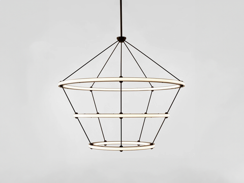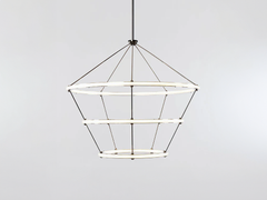 Paul Loebach envisioned the Halo series as a graceful exercise in the use of energy-efficient LED technology. The collection, which includes a range of ceiling and wall lights, is distinguished by its use of cascading rings and bars of light.