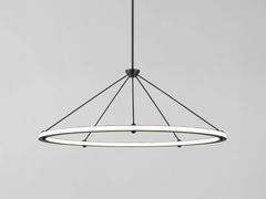 Paul Loebach envisioned the Halo series as a graceful exercise in the use of energy-efficient LED technology. The collection, which includes a range of ceiling and wall lights, is distinguished by its use of cascading rings and bars of light.