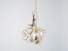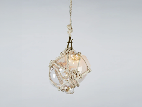 Inspired by Japanese packaging, buoys, and shibari, Knotty Bubbles is a sculptural light made of hand-blown glass 'bubbles' bound together with knotted rope.