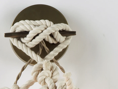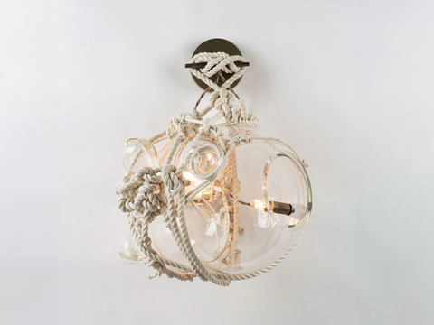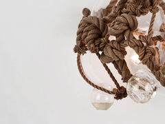 Inspired by Japanese packaging, buoys, and shibari, Knotty Bubbles is a sculptural light made of hand-blown glass 'bubbles' bound together with knotted rope.