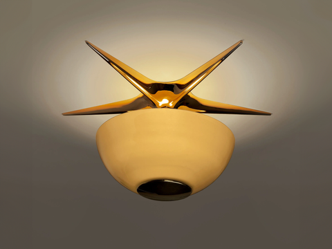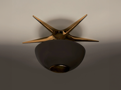 Like the original table lamp, this surface mount echos the one that started it all. Two distinct elements—timeless brass and luminous glass—come together in a surface mount that gracefully bridges past and present, evoking both celestial forms and organic silhouettes. A balance of stars and mushrooms, reimagined overhead.