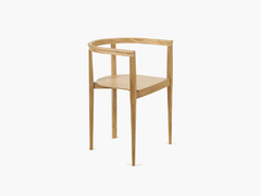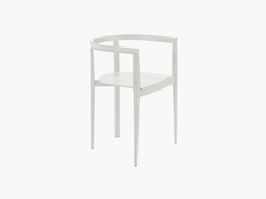 The almost flat front and curved back and arm structure create a solid D-shape when viewed from above, which seems almost at odds with the slender lines of the chair’s profile. This results in a chair that is refined, elegant and graphic at the same time.