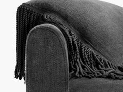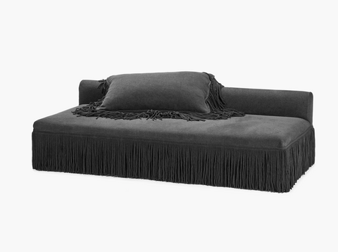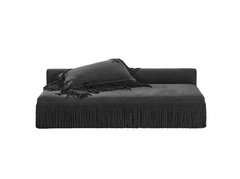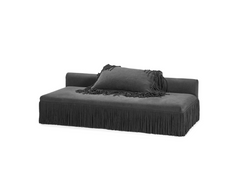 Frou is a seductive seat, with unusually deep, welcoming proportions, a subtle backrest and an accompanying cushion that offer a range of possibilities within an interior setting. The long, black fringing that skirts the edges of each piece has been specially developed so that it is washable. This makes it durable as well as beautiful.