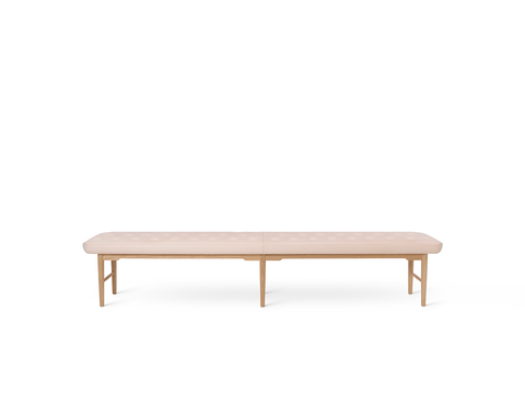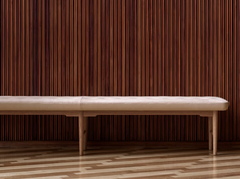 The Foyer Bench has a delicate idiom and is meticulously upholstered with handmade buttons. The Foyer Series was exclusively created by Vilhelm Lauritzen for Radiohuset in Copenhagen in 1945.