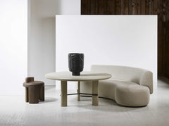 Gentle curves and innovative geometry, make this sofa a strong and sensual piece. Christophe Delcourt designed the rounded, sublimely sloped backrest to support and uplift, such that the lush experience of the sofa is one that revels in the pleasure of relaxation. Balanced, graphic, and robust, the LEK is a warm and comfortable seating choice for any living room.