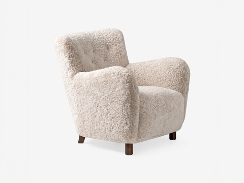 Solid beech wood frame, genuine sheepskin or fabric upholstery, foam padding and linen webbing