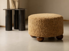 The Luupo Ottoman offers a versatile and sophisticated seating option for any modern interior. The round, inviting form sits on top of solid oak or walnut ball feet in a range of rich finishes.