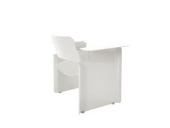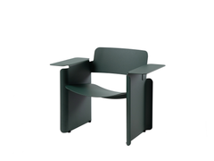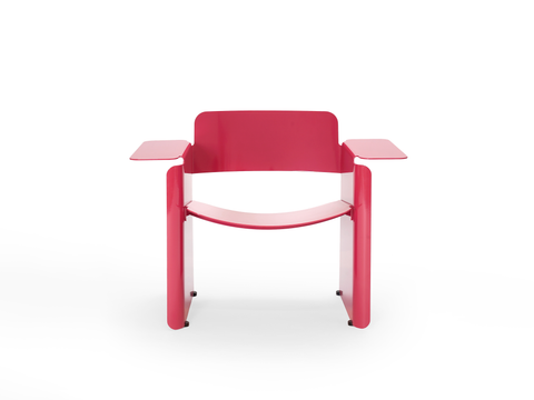 A lounge chair made from laser-cut and bent aluminum sheets. The chair can be used both indoors and outdoors, and fits into different spatial environments without losing its very own typology. The highlighted armrest allows for flexible use and can serve as a side table or temporary work space that meets today’s needs.