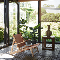 The Hunting Chair is one of Mogensen’s most eye-catching designs. Seen from the side, what’s most notable about the chair is the sharp diagonal slope from the edge of the front seat measuring only 30 cm above the floor. The overall look and logical construction were inspired by Spain’s medieval Andalusian furniture, something that Mogensen would return to time and time again, as seen in his subsequent development of The Spanish Chair.