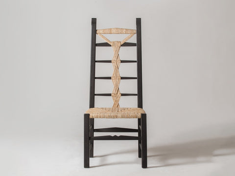 In every rural Sardinian home there are a few wooden, caned chairs that sit in a corner. They are pulled out when visitors come over, when it is time to sit in a circle and shell fava beans or crack open almonds. Chiara Andreatti was inspired by the social aspect behind their use, and by the variations of design and decoration that can be found on historic versions. Hers are enlarged versions - by maintaining the classic proportions while making them bigger overall, she has made them both important and comfortable.