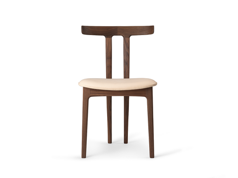 The distinctive expression of Danish designer Ole Wanscher’s OW58 T-Chair challenges the art of the possible without compromising craftsmanship or comfort. Adjusted only in height to provide optimum ergonomics for today’s design enthusiasts who have grown taller since 1958, the sculptural piece embodies both classic and modern lines to give the chair a light and elegant appearance. The result of careful processing and many carpentry hours to achieve smooth transitions in the sustainable wood joints, the chair’s most striking detail is the T-shaped backrest which merges seamlessly with the tightly placed back legs, giving the chair a three-legged appearance. Despite its light expression, the T-Chair has a wide, upholstered seat that provides excellent comfort, making it ideal for dining use.