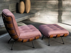 An elegant yet informal ottoman. With its sensual aesthetic, natural materials and intelligent design, it offers sophisticated personalization. Costela is a paradigm of creative design. The fundamental idea on which the chair is built is the beautiful wooden structure with its wooden ribs embracing both the seat and the back, and the functional and aesthetic completion of the detail, ensuring absolute comfort with an extremely natural style in their almost random position.