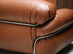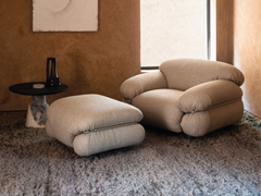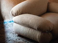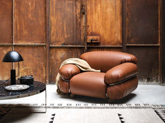 Sesann is a collection of sofas and armchairs with soft, cosy forms that evoke feelings of warmth and sensuality, thanks to the tubular metal frame, which acts as an architectural structure, enveloping, containing and accentuating the cushioning. Sesann commands its space with its bold volumes and elegant, sophisticated design. With a choice of leather or fabric coverings to create striking combinations of colors and textures between the cushions, frame and ash wood feet.