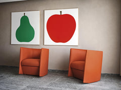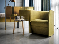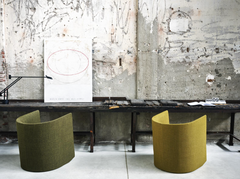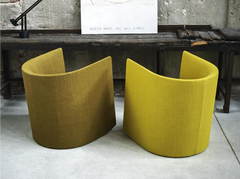 From the visual form of the verbal language – borrowed from the simple configuration of the letter “u” – the Swedish designers translate the game of three-dimensional extrusion, starting from the silent language of human body. Essentially designed for public spaces, offices or hotels, Pisa is an upholstered armchair with compact dimensions, suitable for tight spaces but without excluding aesthetic and comfort. Its minimal shapes embrace the body, creating an intimate feeling. Its geometric shape, with the sloping backrest and a cut profile, creates a strong personality despite restrained measures.