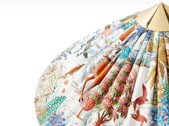 First created for Helsinki’s Hotel Aulanko in 1935 and reintroduced by GUBI in 2018, the 9602 Floor Lamp comprises a rattan-wrapped stem with a polished brass base and conical crown that ties the design together. In this special edition, GUBI brings together two masters of 20th-century design – the Finnish lighting maestro Paavo Tynell, and the renowned Parisian textile house Maison Pierre Frey, introducing a dreamlike new dimension to the Tynell Collection.
