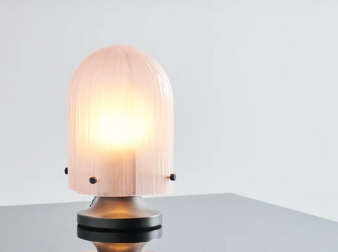 The Seine Collection by Space Copenhagen was inspired by the behavior of light in moving water, an effect that was captured through the use of patterned mouth-blown glass. Each Seine lamp draws on the power of glass to soften, layer, and blur light, creating a dreamy reflective ambiance.