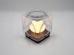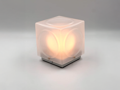 The Chant Portable Table Lamp is a sculptural glass object that elegantly balances form and function, drawing inspiration from the architectural glass blocks of the 1970s. Hand-blown in glass, the lamp features a bold square profile softened by an indented circular motif on each side, offering a refined nod to both nostalgic and modernism.