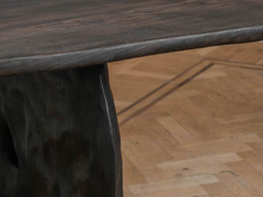 hand-sculpted, waved surface, silk wood top, wood rock base