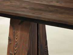 hand-sculpted, waved surface, dark heavily smoked wood top, dark douglas wood base
