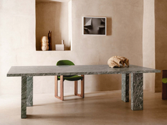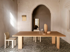 Simple and monumental, Clockwise reveals its subtle humour only to those who manage to grasp the play of steps that define the position of the legs and the alternation of their positioning in the corners of the top. Born from the first collaboration between Tacchini and designer Michael Anastassiades, it is a table with an important presence, which at the same time evokes a sense of lightness in the legs that chase each other almost dancing, rotating around a choreography that suggests the right dance steps to experience it fully.